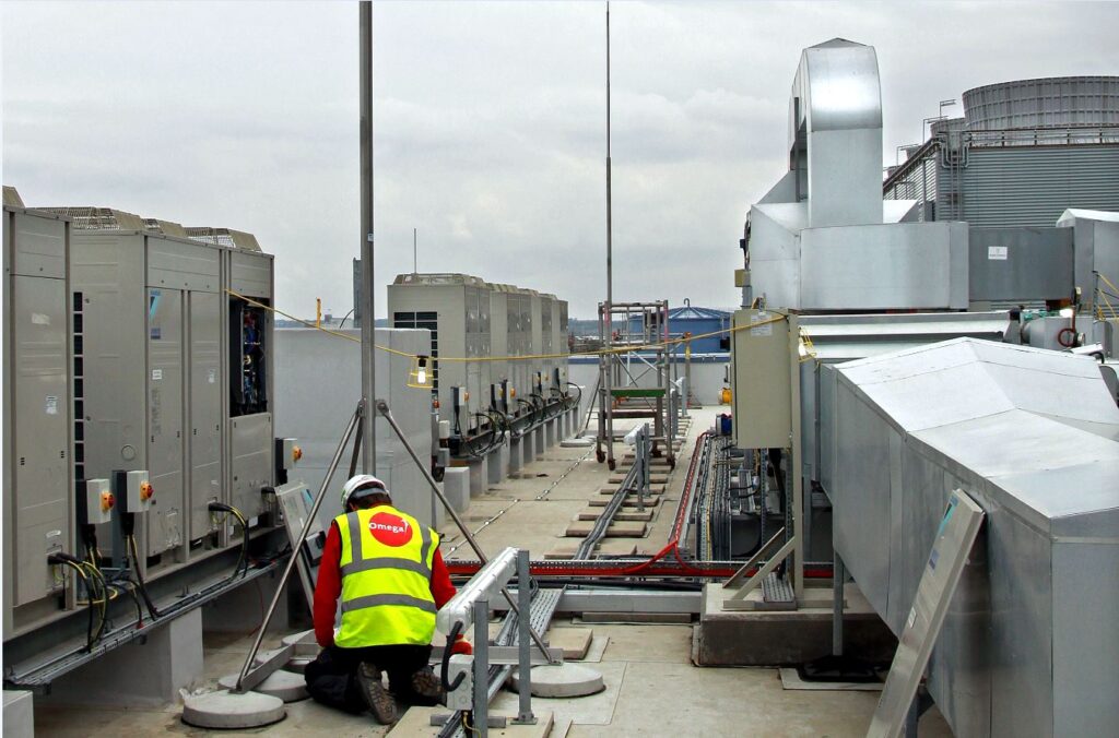 The relevant conductive items on the roof and structure are bonded into the system so they are all electrically connected. This prevents dangerous sparking and side-flashing between components.